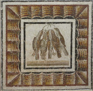 Pigeons at a Roman farmhouse in Tunisia, 3rd century AD.