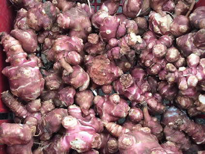 They are not related to globe artichokes although were thought to taste like them. They belong to the sunflower family and "Jerusalem" is said to be a corruption of the Italian word for sunflower girasole (turn to the sun). They are usually either reddish or whitish.