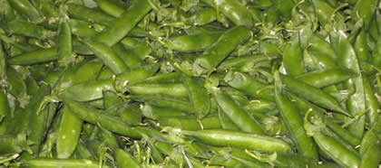 Sugar-snap peas and mangetout: are varieties of peas designed to be picked before the peas are fully formed; the pod is what is eaten. Although they are supposed to be cooked without further preparation, all except the very young ones may have strings, so it is advisable to destring them. They should then be cooked for no more than 3 minutes in salted boiling water. |