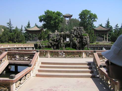 Life is complicated by the fact that Jenny is a big meat-eater and likes spicy food, while Kathryn does not tolerate more than a tiny amount of chilli. This becomes more of a problem as we go West, as the food gets steadily hotter. Kathryn finds a phrase in her phrase-book asking for only a little bit of chilli, but it does not always work, especially in Xinjiang, where not many people read Chinese – although we do get somebody to write down the equivalent phrase in Uigur and that helps. On one disastrous occasion we ended up with double the normal amount of chilli – great piles of whole chilis in our Uigur noodles. One odd thing is the apparent total absence of sweet things. In Japan, even though restaurants do not serve dessert, there are usually lots of shops selling bean-curd sweets to which one can retire to satisfy one’s sweet tooth after a meal, but here there is nothing. There are occasional biscuit shops (also displaying huge and sickly-looking western-style wedding cakes), but the biscuits that we try are dry, boring and only just sweet. Strange to find a society apparently so completely without a sweet tooth. *************************** The terracotta warriors and the imperial tombs Xi’an is the jumping-off place for visiting these, and we book ourselves on two tours organised by an agent in our hotel chiefly for Chinese tourists. We set off the first day in a minibus to see the imperial tombs and various other sights, including the site of the “Xi’an incident” in 1936 when Chang Kai-Shek, who was far more interested in trying to eliminate the communists than in stopping the Japanese invasion, was arrested by one of his own generals and forced to sign an agreement with the communists that he would join them in fighting the Japanese. The whole place has been turned into a sort of theme park celebrating the incident, including a live Chang Kai-Shek look-alike dressed in full uniform next to whom the tourists can have themselves photographed. The imperial tombs are mainly unvisitable mounds, but we are able to climb down to one burial chamber deep underground, that of a 7th century princess. It had well preserved frescoes, including some particularly beautiful ones of elegant 7th century court ladies.