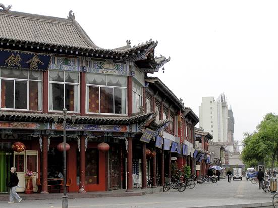 Xi’an, Shaanxi Province, 13-16 May I don’t think any of us knew what to expect, but Xi’an (Sian) turned out to be a vast city – some 7 million people. We drove in from the airport through apparently endless suburbs to a centre that rivalled any major Western city in its array of glittering modern sky-scrapers. The main difference from a modern Western European city was the appalling pollution. A chokingly heavy haze hung over the entire city, with a number of tall factory chimneys belching out yet more black smoke – the sort of chimneys that in Western Europe would be sited some way from the city centre. The main drag, with its fashion and electronic gadget shops, could well have been in Japan, not least because it was tremendously clean – not a piece of litter to be seen. Even in the old Muslim quarter, which has not been modernised and had the usual broken paving stones and potholes, there was much less rubbish than one would expect in that sort of environment. On the telephone to John, I said that it was three-quarters Japan and one-quarter India.