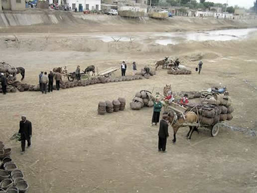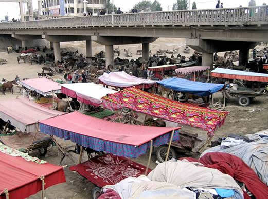 Kuqa Friday market on the riverbed