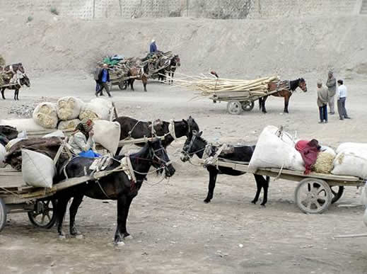 Carts at Kuqa market waiting to go home