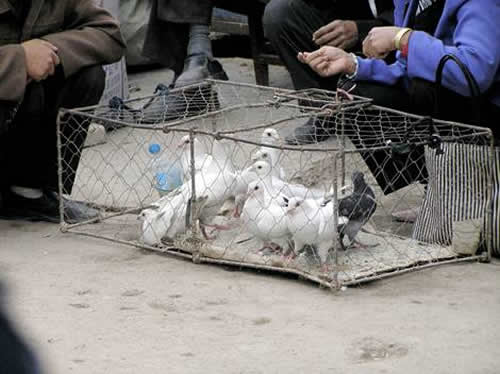 Doves on sale at Kuqa market
