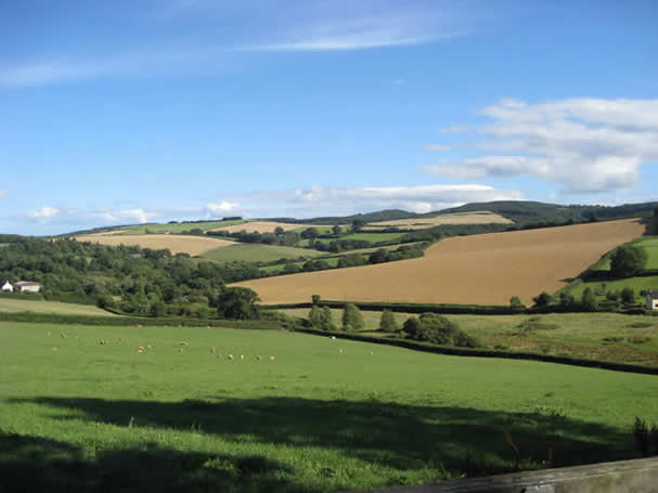 This is still a deeply rural area, albeit now bisected by the busy A30 dual carriageway. As Polwhele says in his History of Devonshire published in 1793-7, “No picturesque views appear within distance that merit a particular description; but in shifting our situation we meet with various prospects which attract the eye; and some very extensive”. The great rounded mound of Cawsand or Cawson on Dartmoor dominates the view to the south-west; and Exmoor is said by Polwhele to be visible from a point near Medland Manor. The country is hilly, but mostly not too hilly to make good pasture and some reasonable arable areas. It is covered in a patchwork of small fields with secretive wooded valleys or ‘bottoms’ and narrow sunken lanes flanked by high banked-up hedges. Again to quote Polwhele, the parish “consists of hills and valleys and is an inclosed parish; and every inclosure may be described as a little hill with a narrow valley at the bottom of it”.