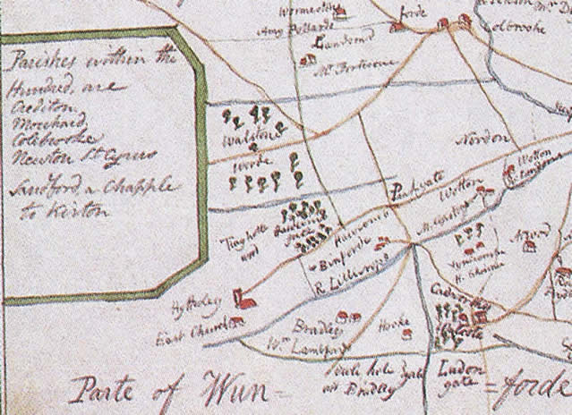 This is all a bit mysterious. In the Domesday Book there are two Manors called Lanford, probably two parts of a previously single domain that was split in Saxon times. The larger part became the Manor of Lampford that passed in medieval times to the Fulford family where it remained until the 20th century. It seems likely that the farm now called Lambert was in the other manor that became known as Parva Lampford or Little Lampford. In 1241, Little Lampford belonged to the Prior of the Monastery at Plympton, although later he is recorded as owning only one-third. The boundaries of manors often changed as neighbouring owners sold bits of land to each other; and manors could also be divided between several owners. The Beaumonts (a large and ancient Devon family who died out in the 17th century) are recorded as owning land in Lampford in 1504, so they may have acquired part of the Prior of Plympton’s holding in Little Lampford. Although the Beaumonts claim to have sold the Manor to William Gorwyne in 1590, there is also a record of the Wise family of Sydenham (other very large landowners) selling the “manor of Lampford” (again apparently Little Lampford) to Nathaniel Risdon of Spreyton (yet another big landowner) in 16578, so they presumably also owned part of it. The Fulfords may also have acquired land in Little Lamford to round out their estate. At any rate, it seems that William Gorwyne, to get a self-contained estate, needed to first to lease land from and then to buy out both Beaumonts and Fulfords.