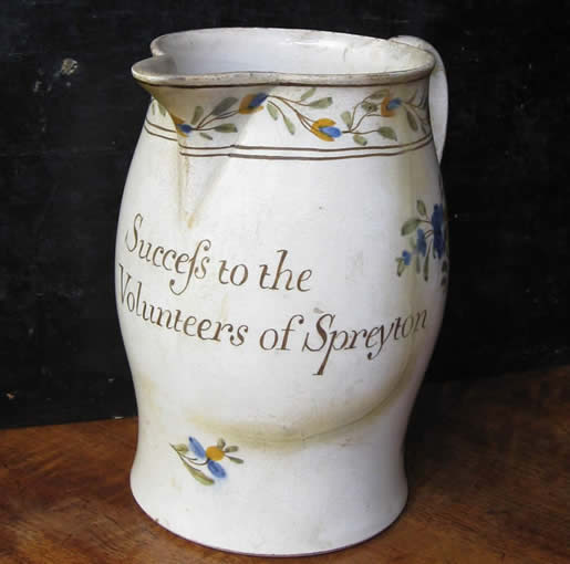 John Cann of Fuidge (1773-1819), the father of the second Mary Cann to marry into the Lambert Gorwyns, seems to have been a particularly enterprising figure. He raised a company of volunteers during the Napoleonic Wars and was made their captain (many years ago, I found a creamware jug in the Portobello Road Market in London inscribed ‘success to the Vounteers of Spreyton’)20.
