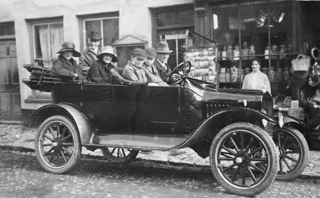 George Lambert (top back) with his four children and a chauffeur in the family Model T Ford