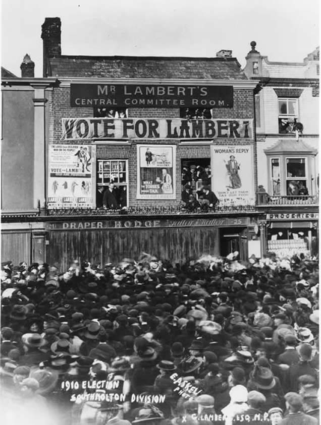 The poll was an exceptionally heavy one, with 7,270 voters out of a total electorate of 7,720 (94%), despite the fact that it was on a rainy Friday, a market day when many farmers were making their way to the markets at Barnstaple and Exeter. There were polling stations in only about every three or four of the smaller parishes, so voters had up to four or five miles to travel. Lambert convincingly overturned the previous Unionist majority, receiving 58% of the vote, a majority of 1,212 – a figure that some ladies of the parish subsequently made into an embroidered picture still in the possession of his descendants. The Liberals had been expecting victory, but only by some 400-600 votes, so it was a spectacular result. Only a year later, there came a general election and George found himself again on the hustings, this time winning by an even bigger majority. From then on (except for one election in the 1920s) the seat was safely his.