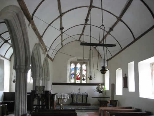 The inside of the tiny parish church at Hittisleigh. There are Lambert Gorwyn graves in the graveyard.